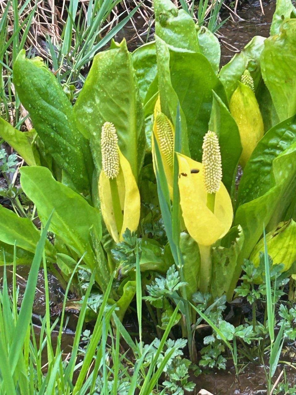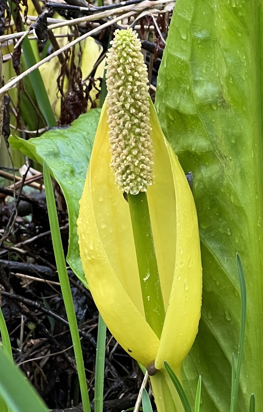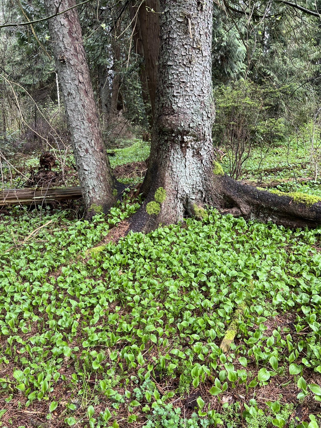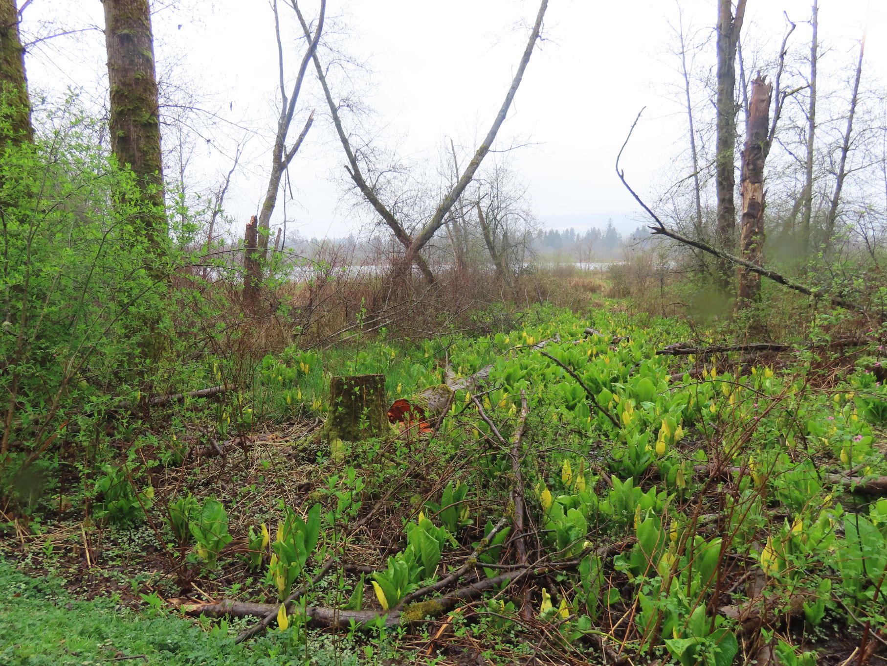 Botanical enthusiasts “came upon a crowd, a host of golden … Skunk Cabbage.” Salmonberry has started to blossom and the dreary, dried out and soggy masses of last year’s reeds and grasses are relieved by waves of new green everywhere.