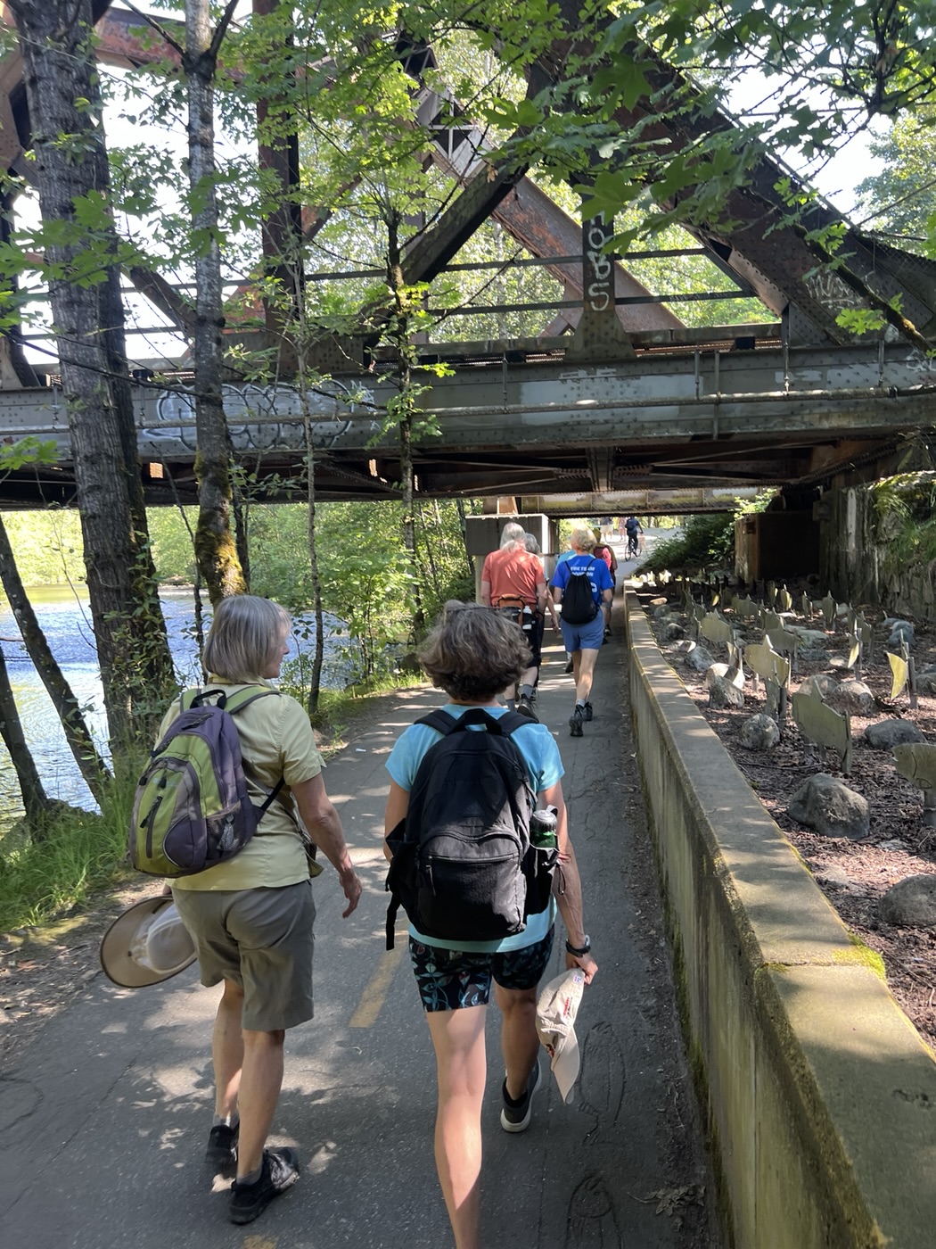 On a beautiful sunny morning 20 Loopers gathered at Gates Park in Port Coquitlam.  This month’s leaders were Diane and Fred.  The group headed north along the east side of the Coquitlam River along the Traboulay PoCo Trail.  The trail, named for a former mayor of Port Coquitlam, forms a 25.3 km loop around the city.