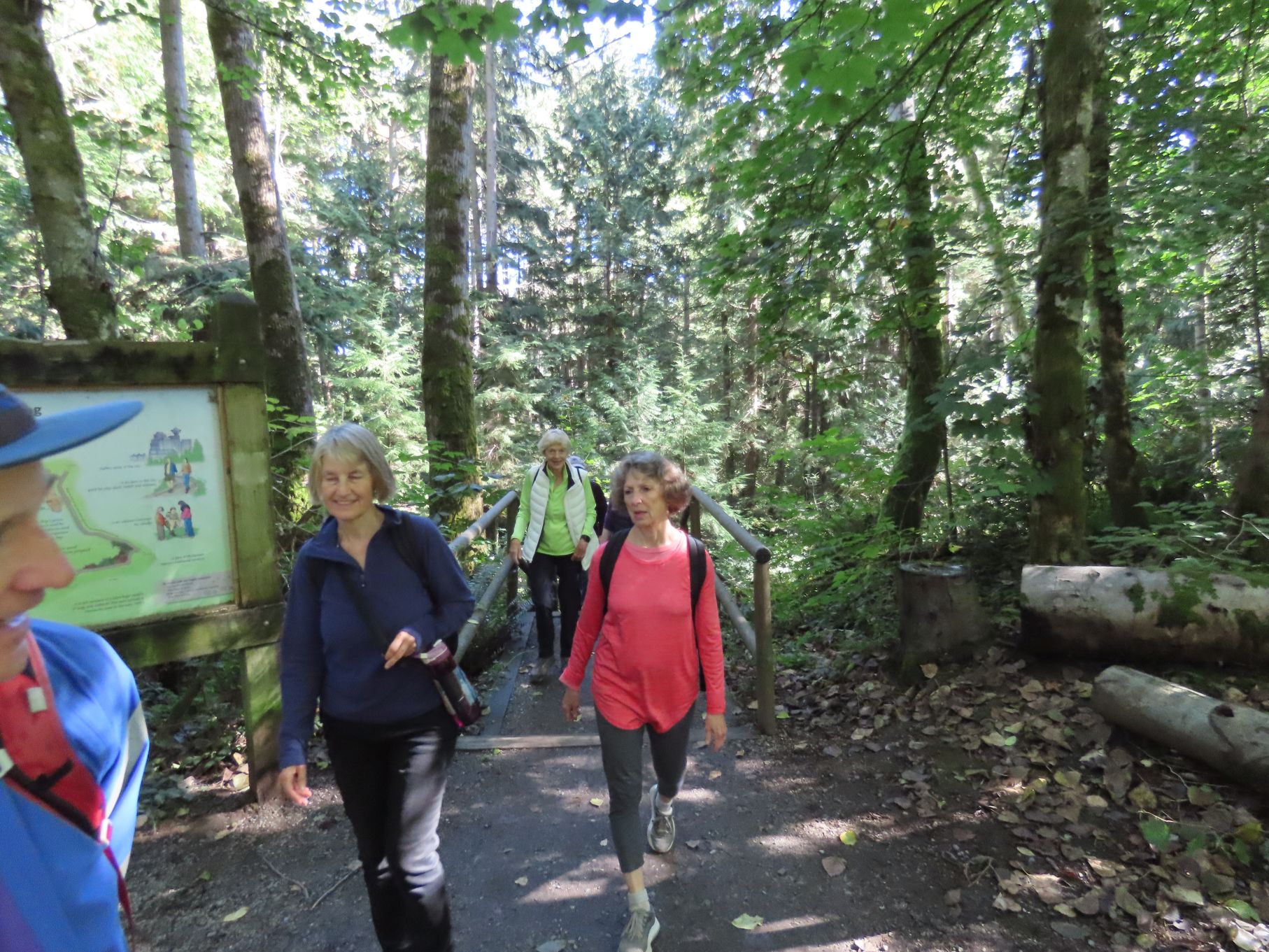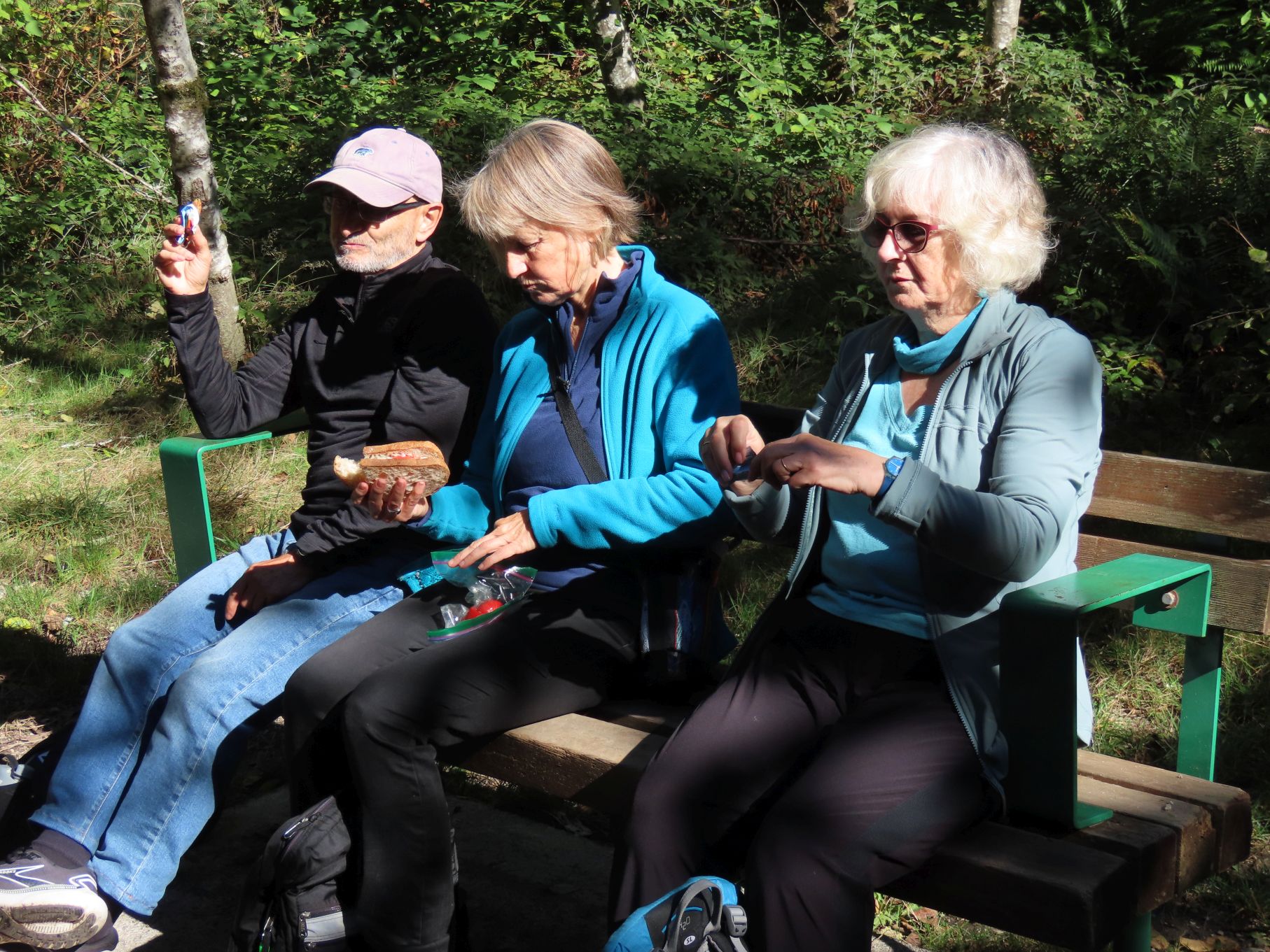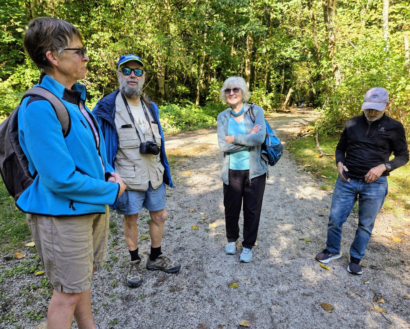 On a crisp and sunny morning, this month’s gathering point was at the corner of 16th Avenue and Imperial Drive. 10 loopers posed for the starting selfie at the Huckleberry trailhead before plunging into the woods. We were joined very shortly by a couple of stragglers.