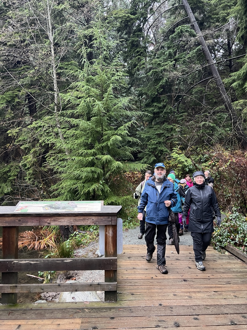 The rest of us crossed Marine Drive and entered Heywood Park and followed a meandering trail upwards alongside MacKay Creek. The creek was high and the water rushed along. And the rain continued.