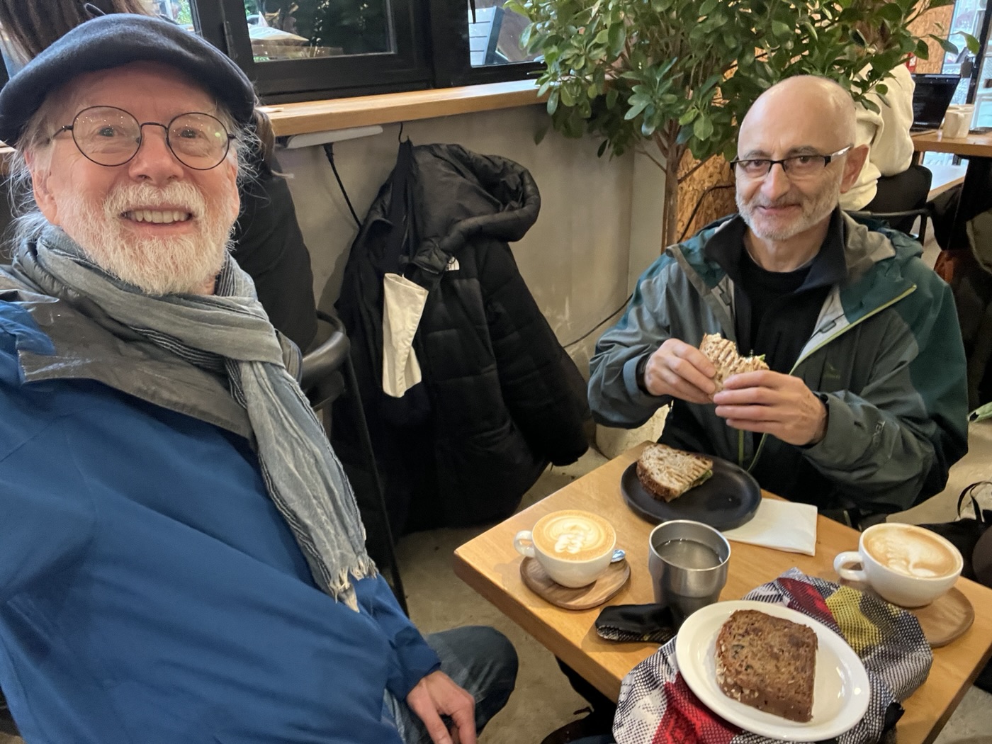 Emerging from Mosquito Creek Park, we said farewell to two of our number who constituted today’s coffee crowd.
