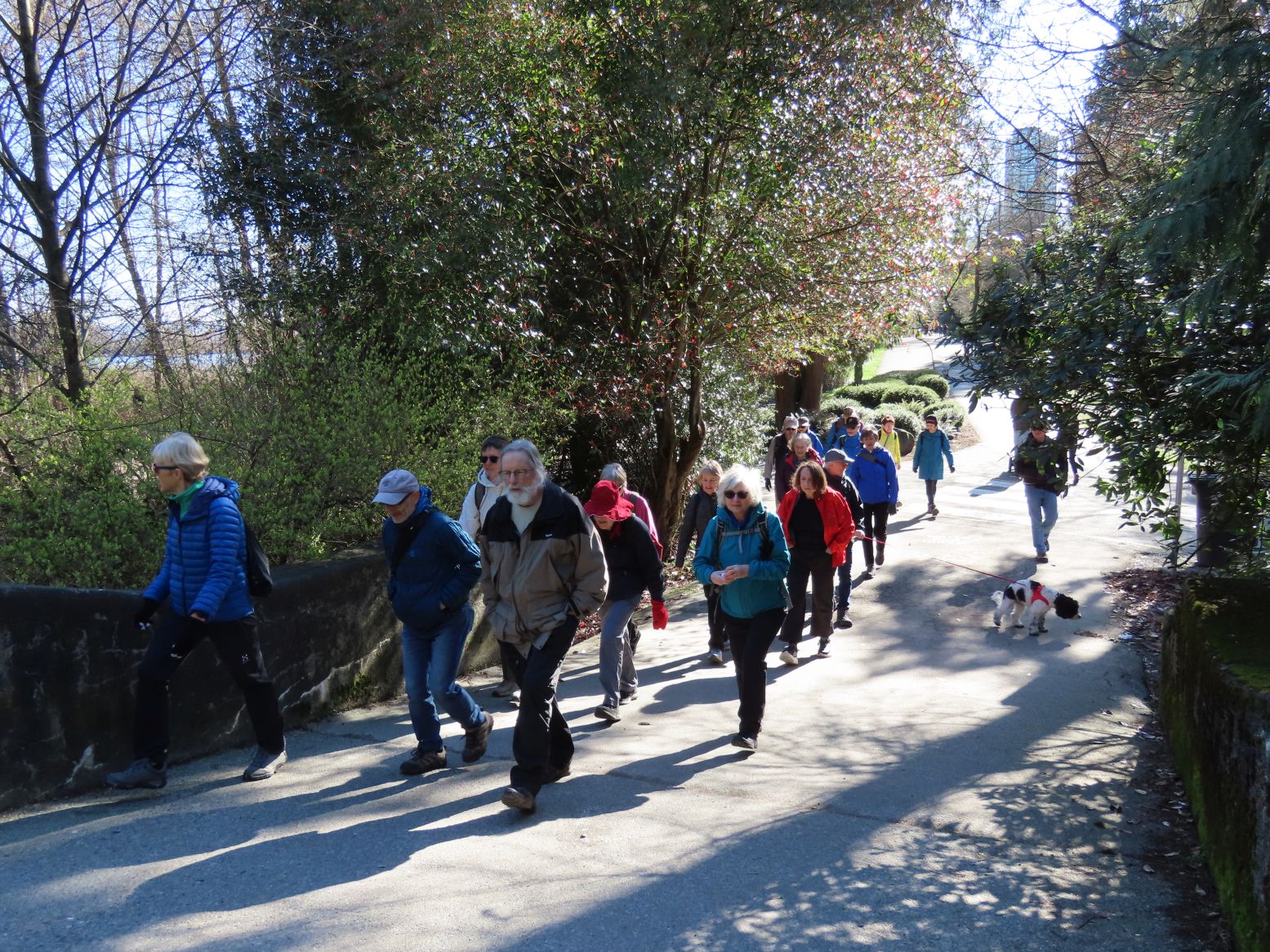 At the start, we were 21 humans plus Finn. We walked along Alberni (where there were lots of sniffing opportunities for Finn) and posed for our starting selfie at the edge of the park.